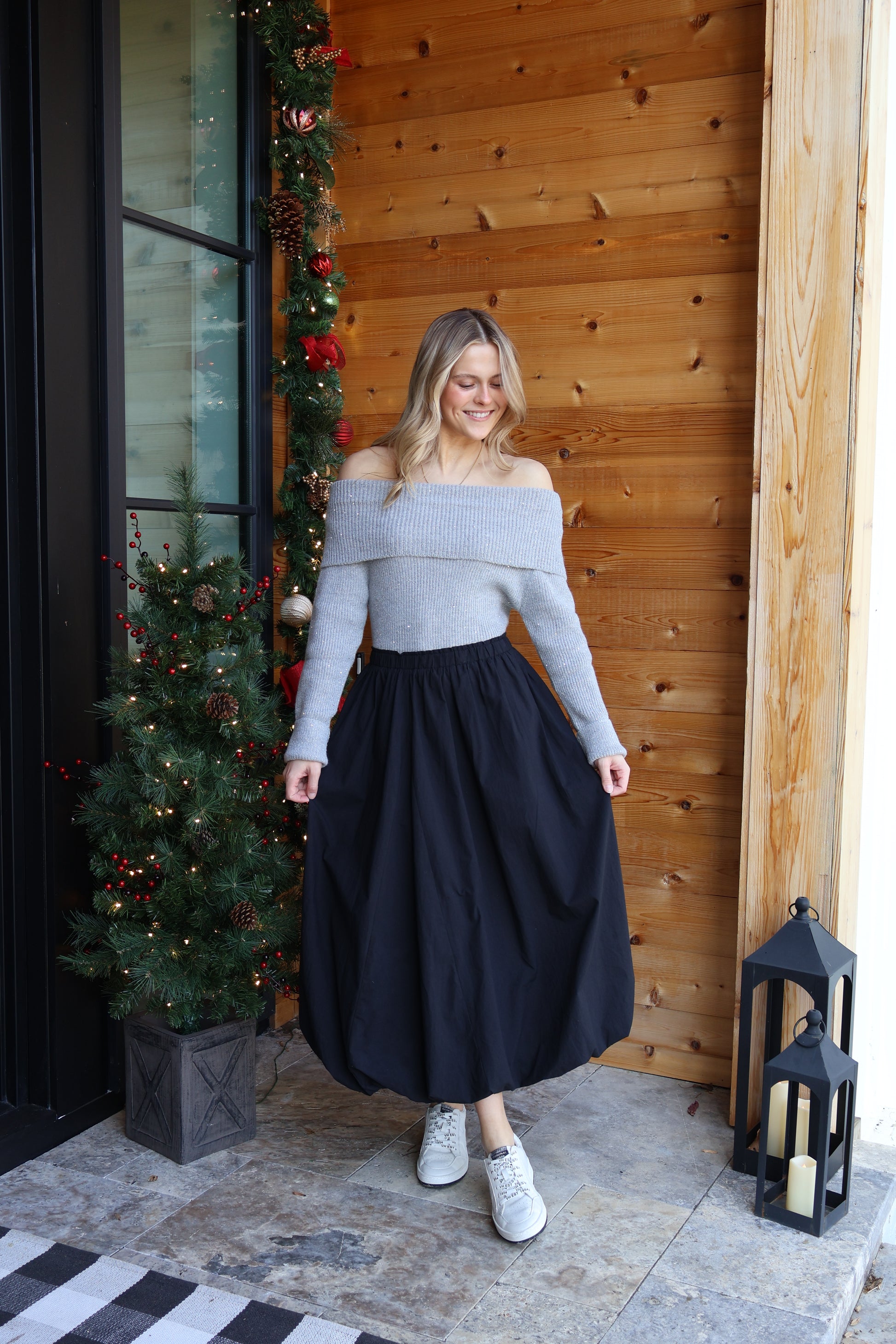 Introducing the Jilly Bubble Skirt—a versatile wardrobe staple that combines comfort with effortless style. 🖤 This classic black midi-to-maxi skirt features a flattering elastic waistband, ensuring a comfortable fit for any occasion. With its soft silhouette and timeless design, the Jilly Bubble Skirt is perfect for everything from casual outings to elegant evenings.