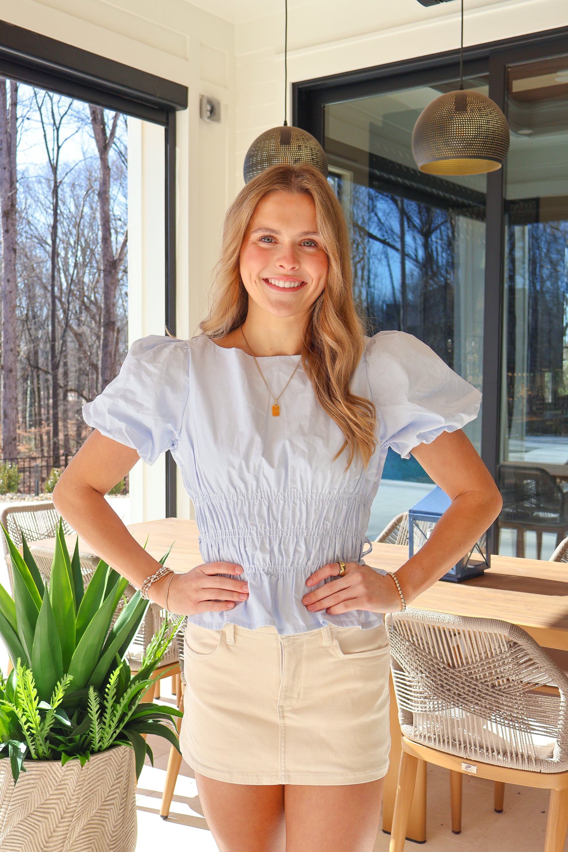 Blue Skies Cinch Puff Sleeve Top – Blue