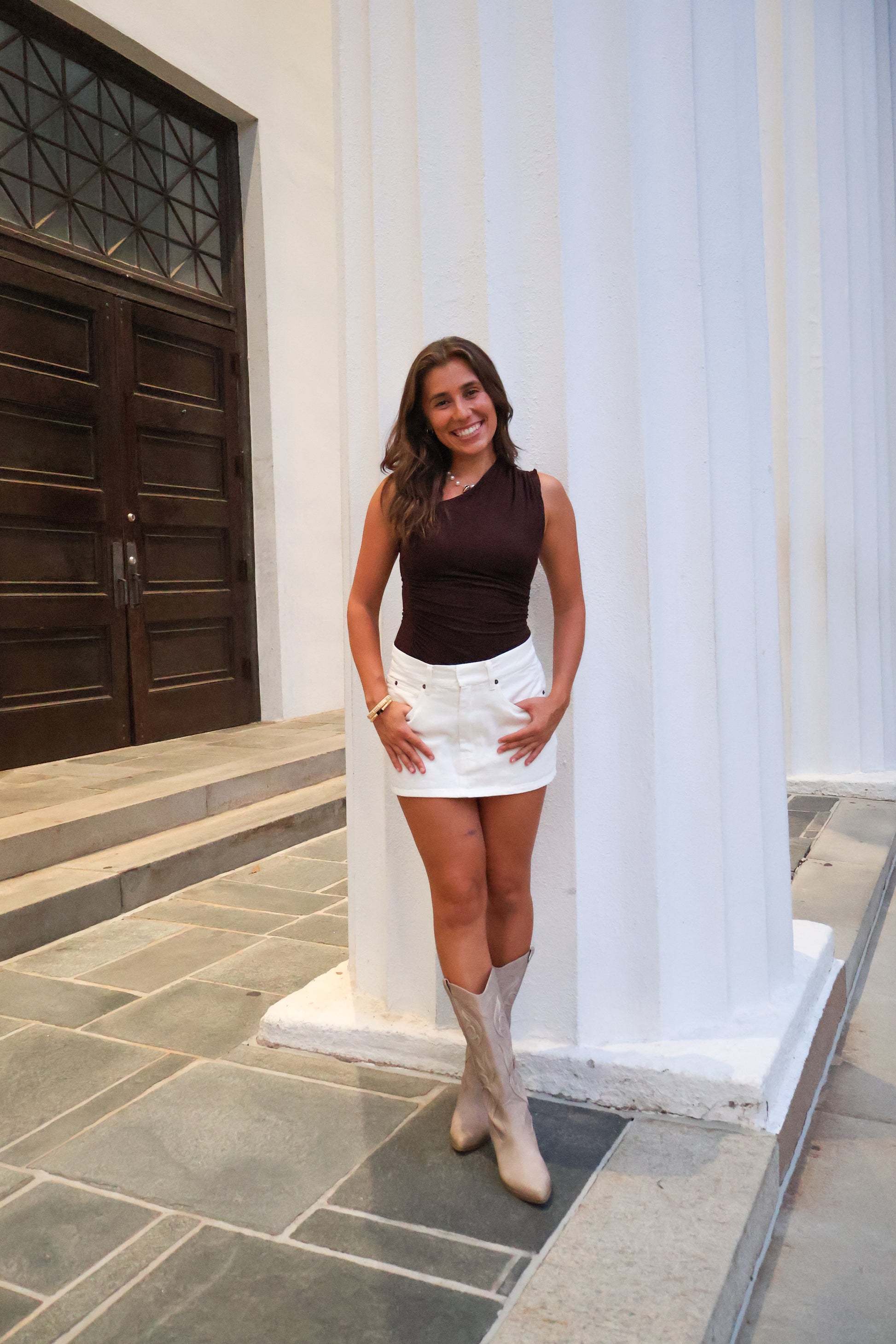 The Bria Top is a sleek and versatile piece designed in a rich mocha brown. Featuring a gathered neckline and sleeveless cut, this fitted top creates a flattering silhouette that’s perfect for both day and night. The soft, stretchy fabric offers comfort while keeping a polished, elevated look.